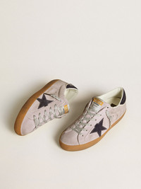 A timeless icon yet one that’s constantly evolving. At Golden, we love taking our classics and reworking them all the time, always from a new angle. These Super-Star with a lilac suede upper feature a midnight blue suede star and heel tab. The white lettering embroidered on the heel and silver lurex laces add the finishing touch. DETAILS Item No. GWF00101.F006544.45436 - Lilac suede upper - Midnight blue suede star - Midnight blue suede heel tab - Embroidered white lettering on the heel - Silver Lurex laces - Vintage finish - Upper: 83% cow leather, 17% sheepskin leather - Lining: 41% cotton, 31% cow leather, 18% textile polyurethane, 6% polyester, 4% viscose - Sole: 100% rubber - Handmade - Made in Italy