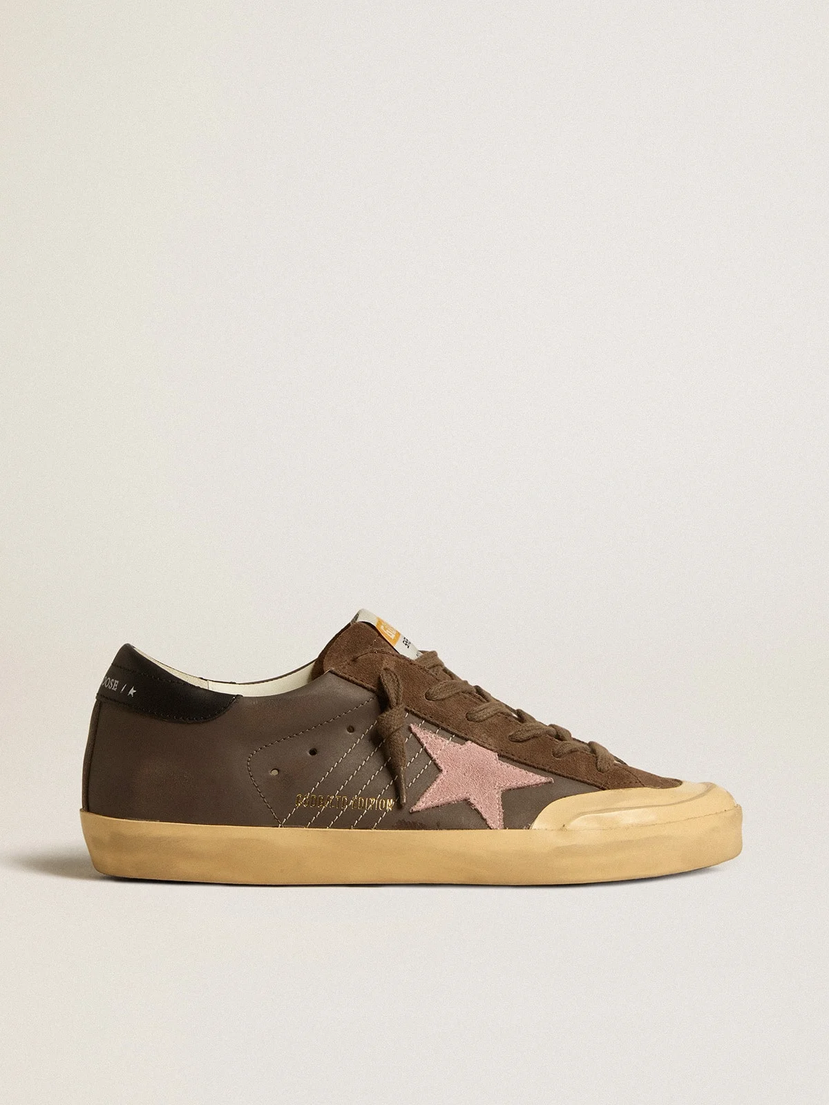 A timeless icon yet one that’s constantly evolving. At Golden, we love taking our classics and reworking them all the time, always from a new angle. These Super-Star with a brown leather upper feature an old rose suede star and a black leather heel tab. The brown suede inserts and tongue and brown laces add the finishing touch. DETAILS Item No. GWF00107.F005204.55574 - Color: brown - Old rose suede star - Black leather heel tab - Brown suede inserts - Brown suede tongue - Brown laces - Vintage finish - Upper: 100% cow leather - Lining: 49% cotton, 22% cow leather, 18% polyurethane, 6% polyester, 5% viscose - Sole: 100% rubber - Handmade - Made in Italy