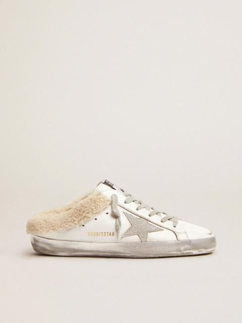 Super-Star Sabots in white leather with shearling lining