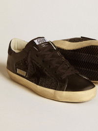 Women's Super-Star in black glitter with black suede star and leather inserts