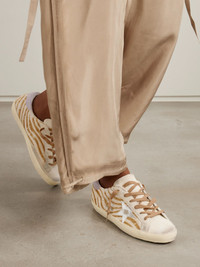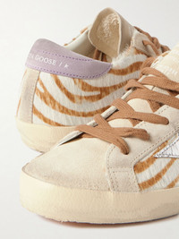 Super-Star distressed metallic leather and suede-trimmed zebra-print calf hair sneakers Zebra print