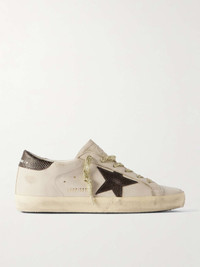EDITORS'NOTES Each iteration of Golden Goose's iconic 'Super-Star' sneakers is even cooler than the last. This pair has been made in Italy from signature hand-distressed leather and finished with croc-effect stars and heel tabs. The metallic laces add the perfect shimmering touch. SIZE & FIT - Fits true to size, take your normal size - Only available in full sizes, go up to the nearest whole size if you take a half size - Italian sizing DETAILS & CARE - Rubber sole measures approximately 30mm/ 1 inch - Off-white leather, brown croc-effect leather - Lace-up front