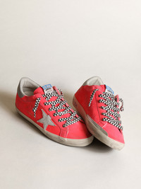 Super-Star sneakers in fluorescent lobster-colored suede with a white pony skin star