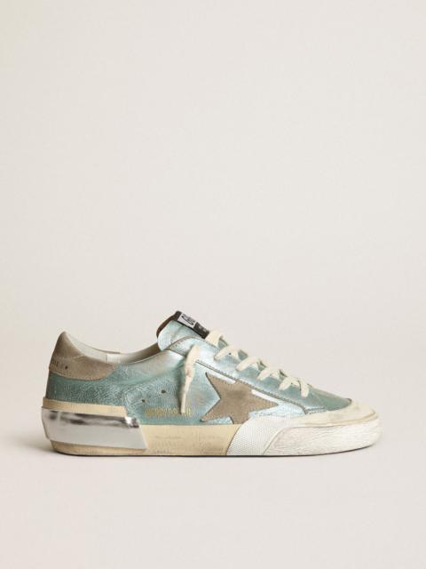 Super-Star sneakers in mint-green laminated leather with ice-gray suede star and multi-foxing