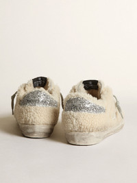 Super-Star sneakers in beige shearling with silver glitter star and heel tab
