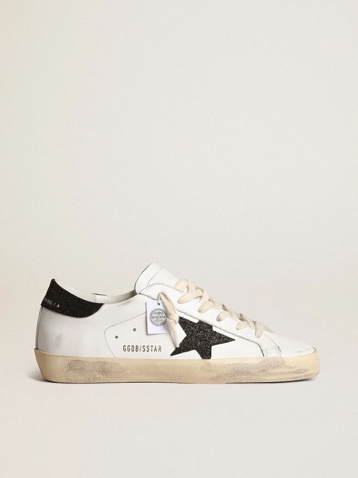 A timeless icon yet one that’s constantly evolving. At Golden, we love taking our classics and reworking them all the time, always from a new angle. These Super-Star sneakers with a white leather upper feature a black Swarovski crystal star and heel tab. And white laces add the finishing touch. DETAILS Item No. GWF00101.F003974.10283 - Color: white - Black Swarovski crystal star - Black Swarovski crystal heel tab - White laces - Vintage finish - Upper: 93% cow leather, 7% crystals - Lining: 49% cow leather, 41% cotton, 5% polyamide, 5% textile polyurethane - Sole: 100% rubber - Handmade - Made in Italy