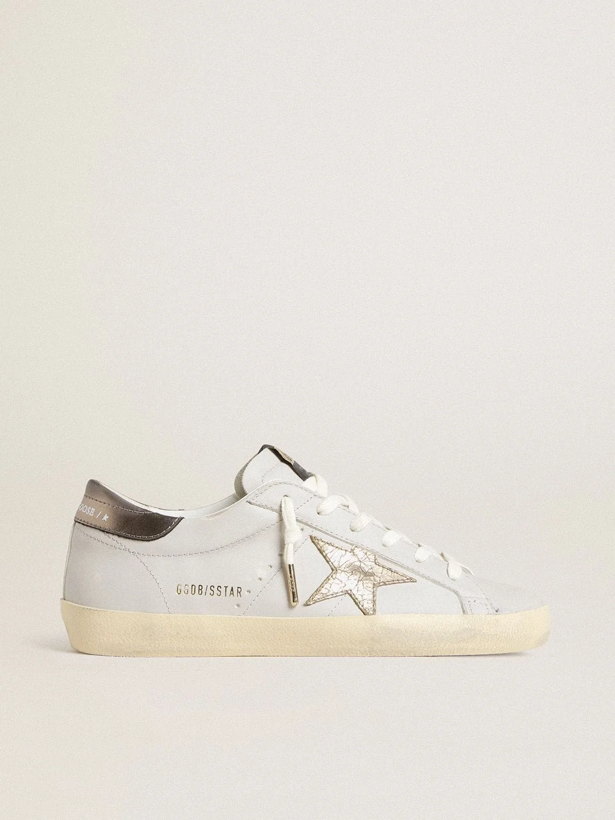 A timeless icon yet one that’s constantly evolving. At Golden, we love taking our classics and reworking them all the time, always from a new angle. These women’s Super-Star with a white nappa leather upper feature a platinum-colored foiled crackle leather star and a metallic foiled leather heel tab. And white laces add the finishing touch. DETAILS Item No. GWF00101.F007596.12287 - White nappa leather upper - Platinum foiled crackle leather star - Metallic foiled leather heel tab - White laces - Vintage finish - Upper: 100% cow leather - Lining: 35% cow leather, 34% cotton, 19% textile polyurethane, 7% polyester, 5% viscose - Sole: 100% rubber - Handmade - Made in Italy