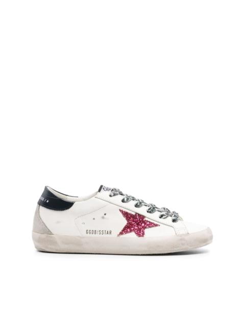 Super-Star leather sneakers Highlights - White - Calf leather - Smooth grain - Suede panelling - Distressed finish - Logo-debossed tongue - Signature star patch to the sides - Contrasting branded heel counter - Front lace-up fastening - Round toe - Branded leather insole - Flat rubber sole Made in Italy Composition Leather 100% SIZE & FIT Measurement HEEL 0.98 in(2.5 cm) Sole height 0.98 in(2.5 cm)