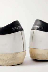 Superstar distressed leather-trimmed suede sneakers