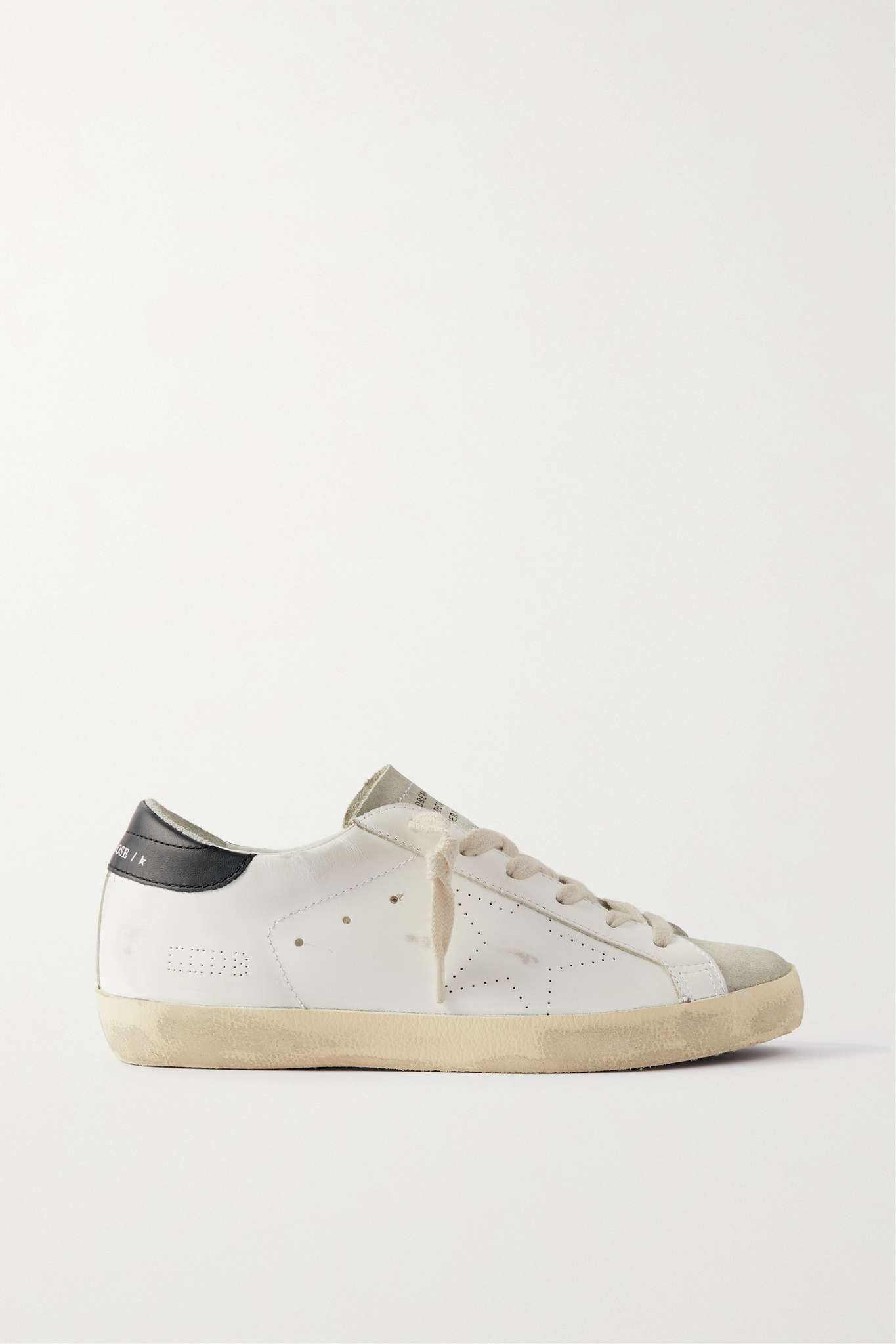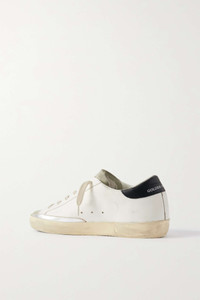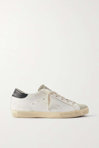 EDITORS'NOTES The slim shape and low-top cut of Golden Goose's 'Super-Star' sneakers means they can be styled with so many outfits. Crafted from leather, they have the label's signature distressed finish across the suede toes and soles for an authentic vintage feel. SIZE & FIT - Fits true to size, take your normal size - Only available in full sizes, go up to the nearest whole size if you take a half size - Italian sizing DETAILS & CARE - Rubber sole measures approximately 20mm/ 1 inch - White and black leather, light-gray suede (Cow) - Lace-up front - Designer color: White/ Ice/ Black