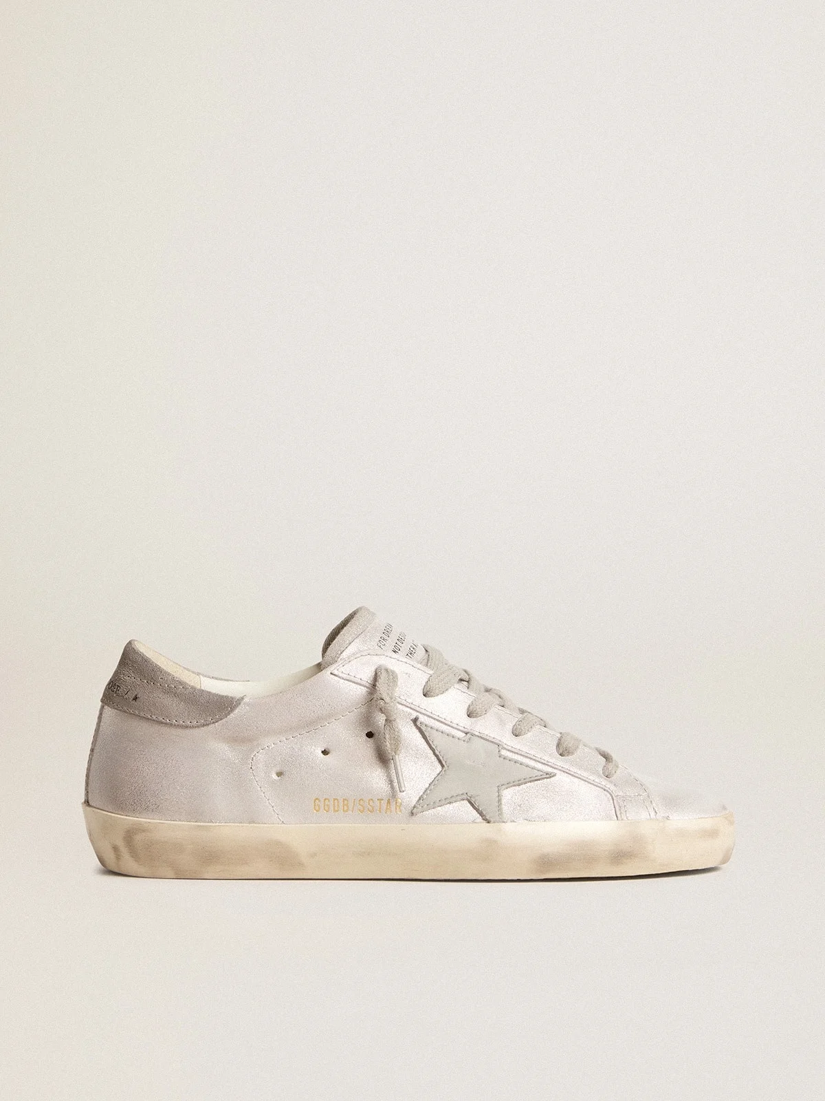 Super-Star sneakers in gray-white glitter-effect leather with leather star