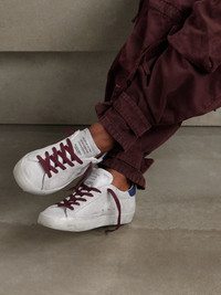 Golden Goose's passion for the imperfect is what sets its designs apart. These leather-trimmed 'Super-Star' sneakers are made from metallic suede, which is distressed for a uniquely worn-in look. The star emblem is perforated at the sides. Details & Care - Rubber sole measures approximately 25mm/ 1 inch - Silver suede, navy and white leather (Cow) - Lace-up front