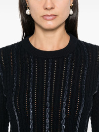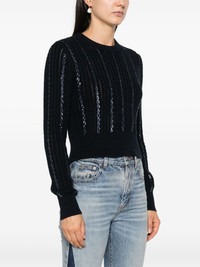 sequin-detailing sweater Highlights - Midnight blue - Organic cotton - Cable knit - 3d-knit construction - Sequin detailing - Crew neck - Long sleeves - Cropped - Straight hem Made in Italy Composition Organic Cotton 100% SIZE & FIT Model measurements Height 5 ft 11 in(1.8 m) Bust/Chest 33.07 in(84 cm) Hips 37.4 in(95 cm) Waist 25.19 in(64 cm) FittingInformation Designed for a slim fit that sits just away from the body offering a close yet comfortable fit The ribbed hem offers a close, comfortable fit Made with a midweight knit, this piece offers some stretch
