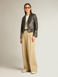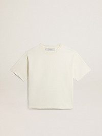 A unique, timeless collection that encapsulates the Golden Goose DNA, designed to remain with you every day, through thick and thin, come rain or shine. In aged white cotton with a distressed finish, this T-shirt with an Asian Market Exclusive fit features a raised reverse Golden logo on the back. DETAILS Item No. GWP01874.P001576.11560 - Color: aged white - Reverse Golden logo on the back - Double gold star on the back - Boxy fit - Asian Market Exclusive - Short sleeves - Distressed finish - Main material: 100% cotton - Made in Italy The model is 183 cm tall and is wearing a size M.