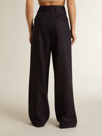 Women’s dark blue tailored trousers with vertical stripe