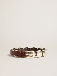 Trinidad thin belt in dark brown leather with silver studs