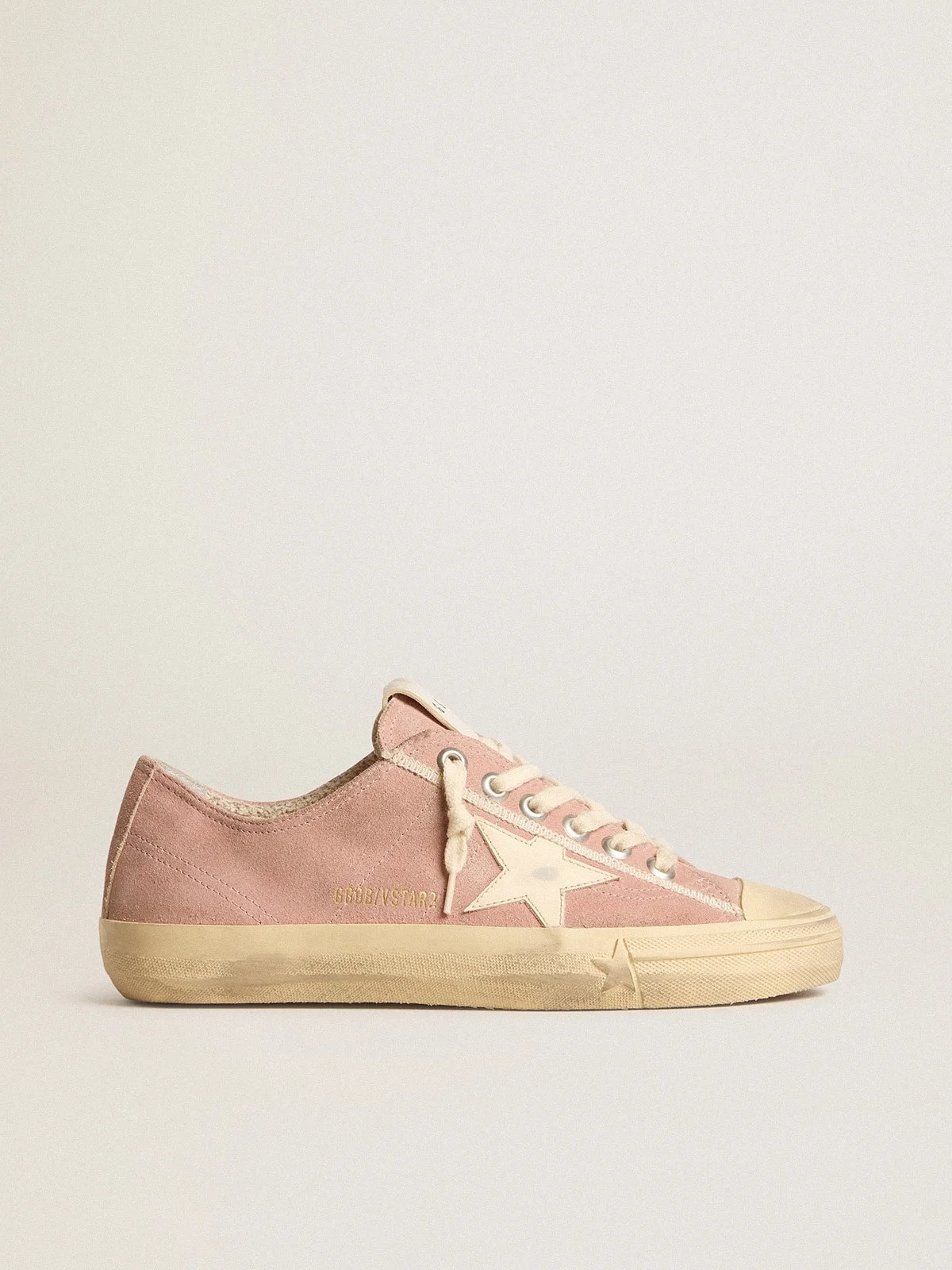 Beauty that lies in simplicity: in our V-Star sneakers, an essential shape meets stylish detail. This model with a pink suede upper features a cream leather star. The beige rubber toe, cream-colored grosgrain trim and cream-colored laces complete the look. DETAILS Item No. GWF00129.F005885.25703 - Pink suede upper - Cream-colored leather star - Cream-colored grosgrain trim - Cream-colored laces - Beige rubber toe - Vintage finish - Upper: 100% cow leather - Lining: 54% cotton, 46% cow leather - Sole: 100% rubber - Handmade - Made in Italy