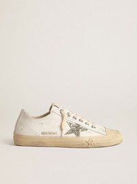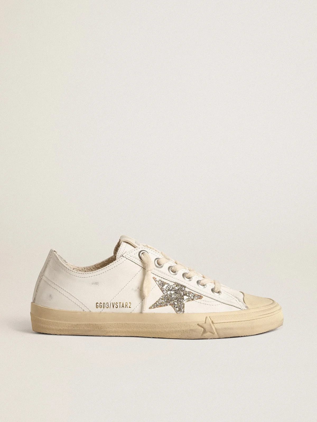 Beauty that lies in simplicity: in our V-Star sneakers, an essential shape meets stylish detail. This model with a white leather upper features a platinum glitter star. And cream-colored laces add the finishing touch. DETAILS Item No. GWF00129.F004565.10847 - Color: white - Platinum glitter star - Cream-colored laces - Vintage finish - Upper: 89% cow leather, 7% acrylic, 2% polyethylene terephthalate, 1% cotton, 1% polyester - Lining: 54% cotton, 39% cow leather, 5% polyester, 2% textile polyurethane - Sole: 100% rubber - Handmade - Made in Italy