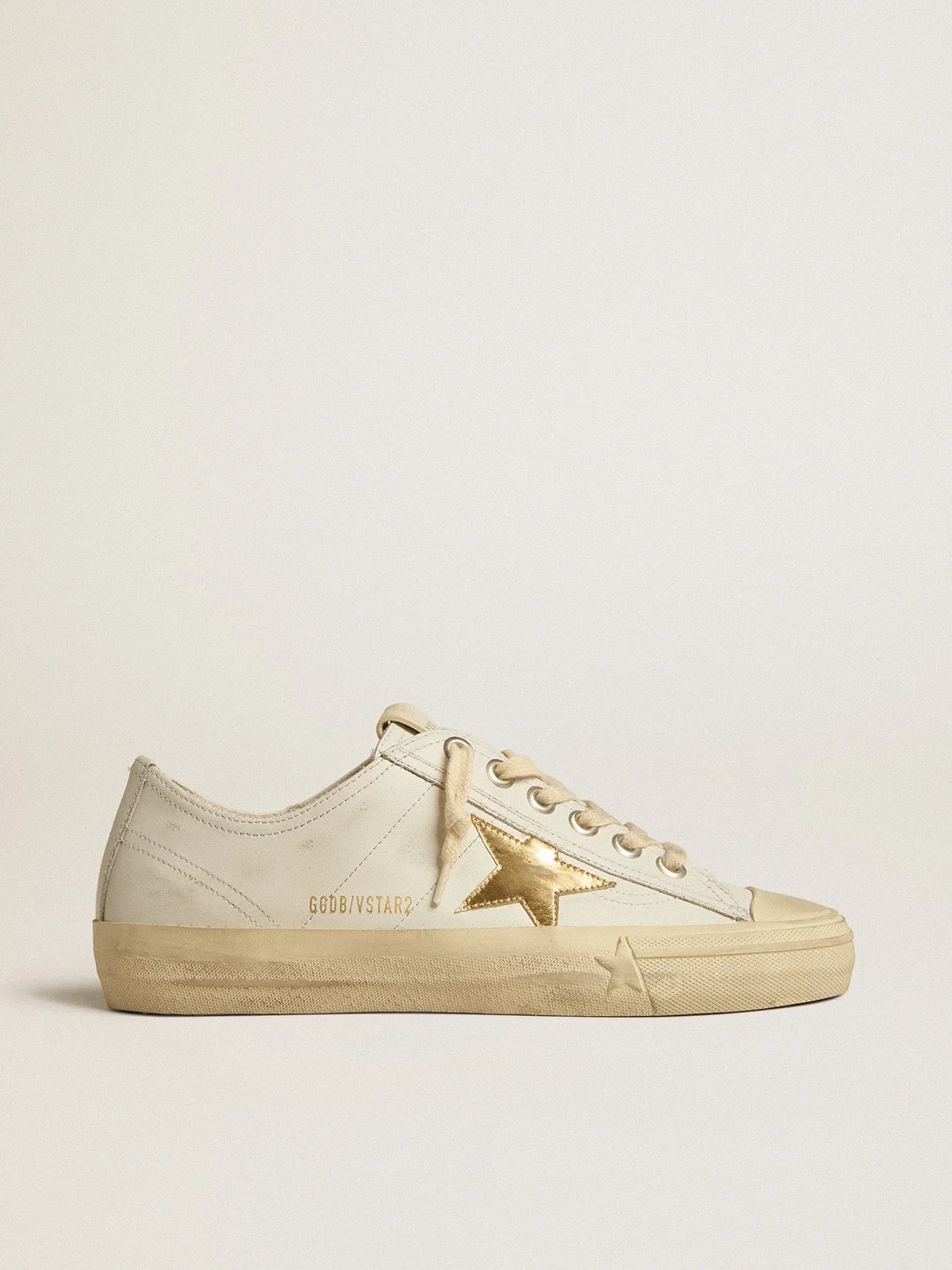 Beauty that lies in simplicity: in our V-Star sneakers, an essential shape meets stylish detail. This model with a white leather upper features a gold metallic leather star. And cream-colored laces add the finishing touch. DETAILS Item No. GWF00129.F005292.10272 - Color: white - Gold metallic leather star - Cream-colored laces - Vintage finish - Upper: 100% cow leather - Lining: 54% cotton, 39% cow leather, 5% polyester, 2% textile polyurethane - Sole: 100% rubber - Handmade - Made in Italy