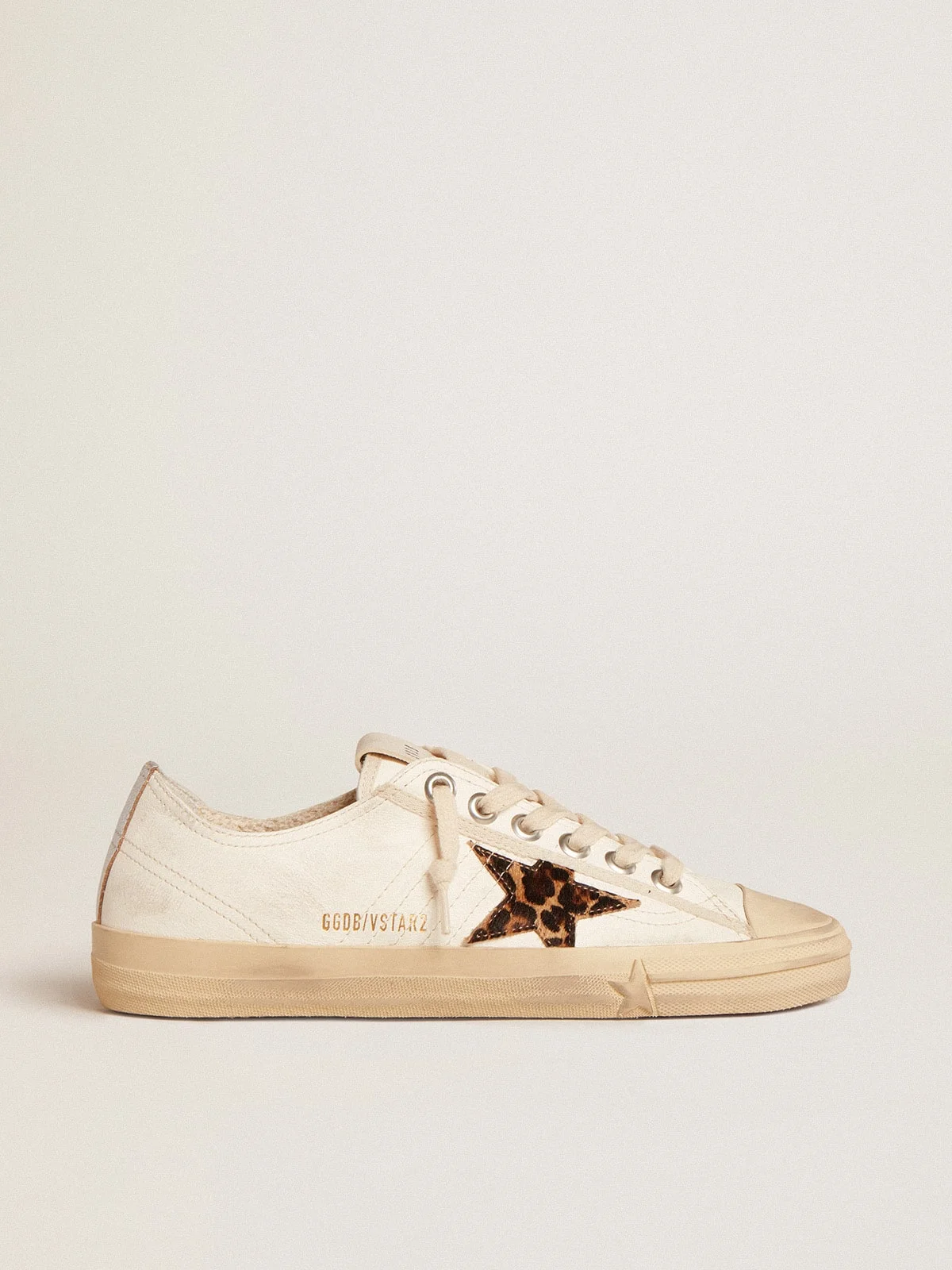 Beauty that lies in simplicity: in our V-Star sneakers, an essential shape meets stylish detail. This LTD model with a white nappa leather upper features a pony skin star in beige and brown leopard print. The silver metallic leather heel tab and beige laces add the finishing touches. DETAILS Item No. GWF00129.F005031.81418 - White nappa leather upper - Pony skin star in beige and brown leopard print - Silver metallic leather heel tab - Beige trim - Beige rubber toecap - Beige laces - Vintage finish - Upper: 87% sheepskin leather, 7% acrylic, 3% cow leather, 2% goatskin leather, 1% polyester - Lining: 54% cotton, 39% cow leather, 5% polyester, 2% textile polyurethane - Sole: 100% rubber - Handmade - Made in Italy