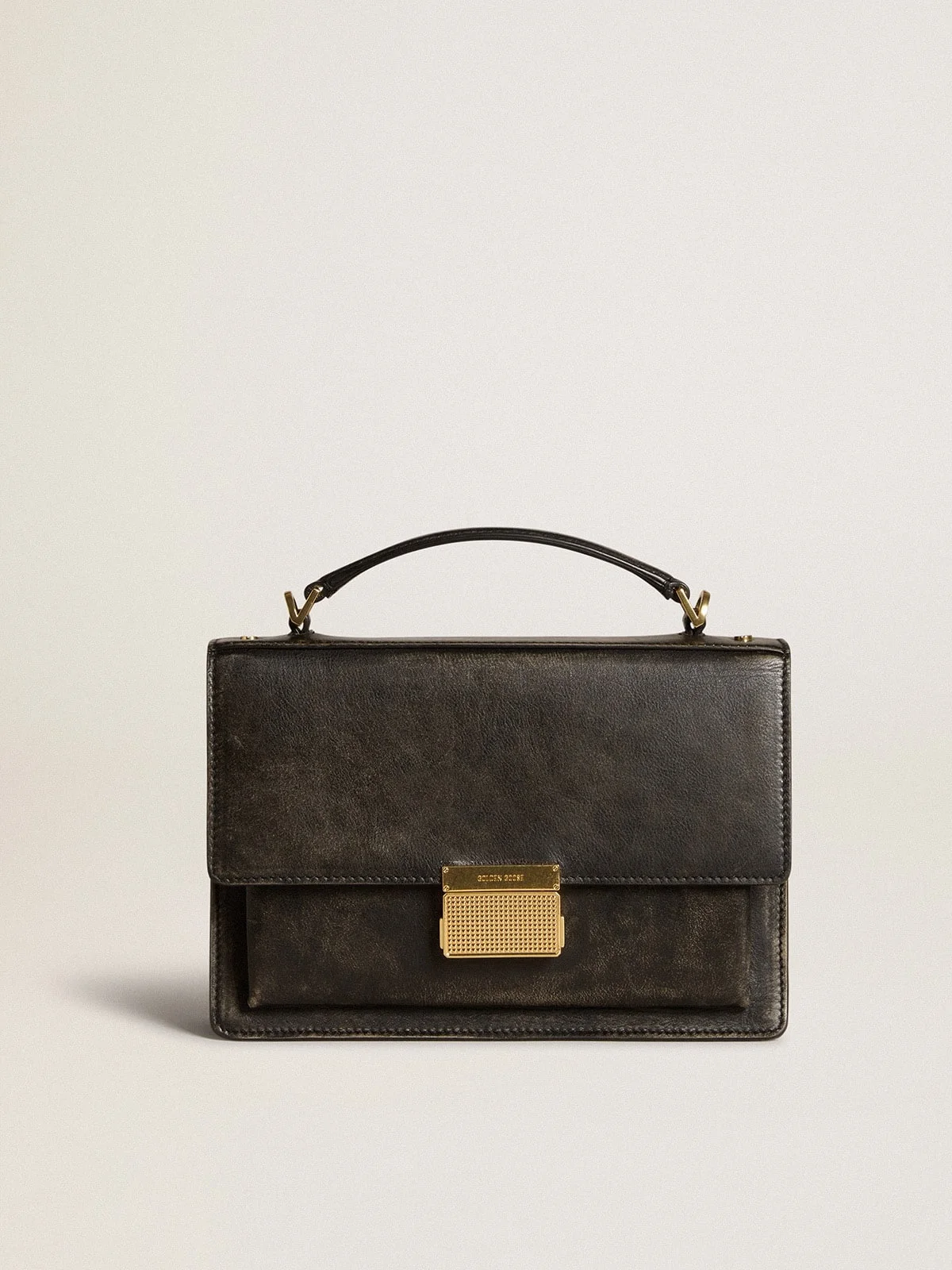 Functional yet sophisticated, our Venezia bag is a statement of Venetian elegance, inviting you to carry a piece of its soul wherever you go. In black distressed leather, this model features a gold-tone buckle closure and gold-colored metal detailing. The double inside pocket adds the finishing touch. DETAILS Item No. 8050235736900 - Color: black - Gold-tone buckle closure with side buttons - Double inside pocket - Inner card holder - Logo on the back - Adjustable shoulder strap with snap hook - Main material: 100% cow leather - Lining: 100% cow leather - Size: 22 x 19 x 7.5 cm - Length of shoulder strap: 112 cm to fourth hole - Chain width: 1.5 cm