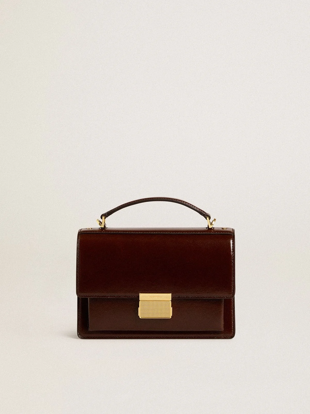 Venezia Bag in dark brown laminated leather with gold details