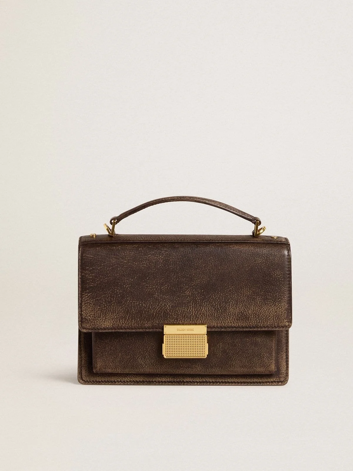 Venezia Bag in vintage dark brown embossed leather with gold details