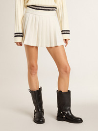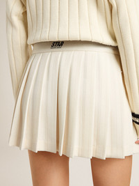 A collection with a casual soul but a versatile attitude: inspired by the Seventies, it has a timeless vintage appeal, suited to any occasion or look. This white pleaded miniskirt features an elasticated waistband. The black Star logo on the back of the waistband adds the finishing touch. DETAILS Item No. GWP02093.P001801.20103 - Star Collection - Color: white - Pleated skirt model - Elasticated waistband - Main material: 100% polyester - Waistband material: 100% cotton - Made in Italy