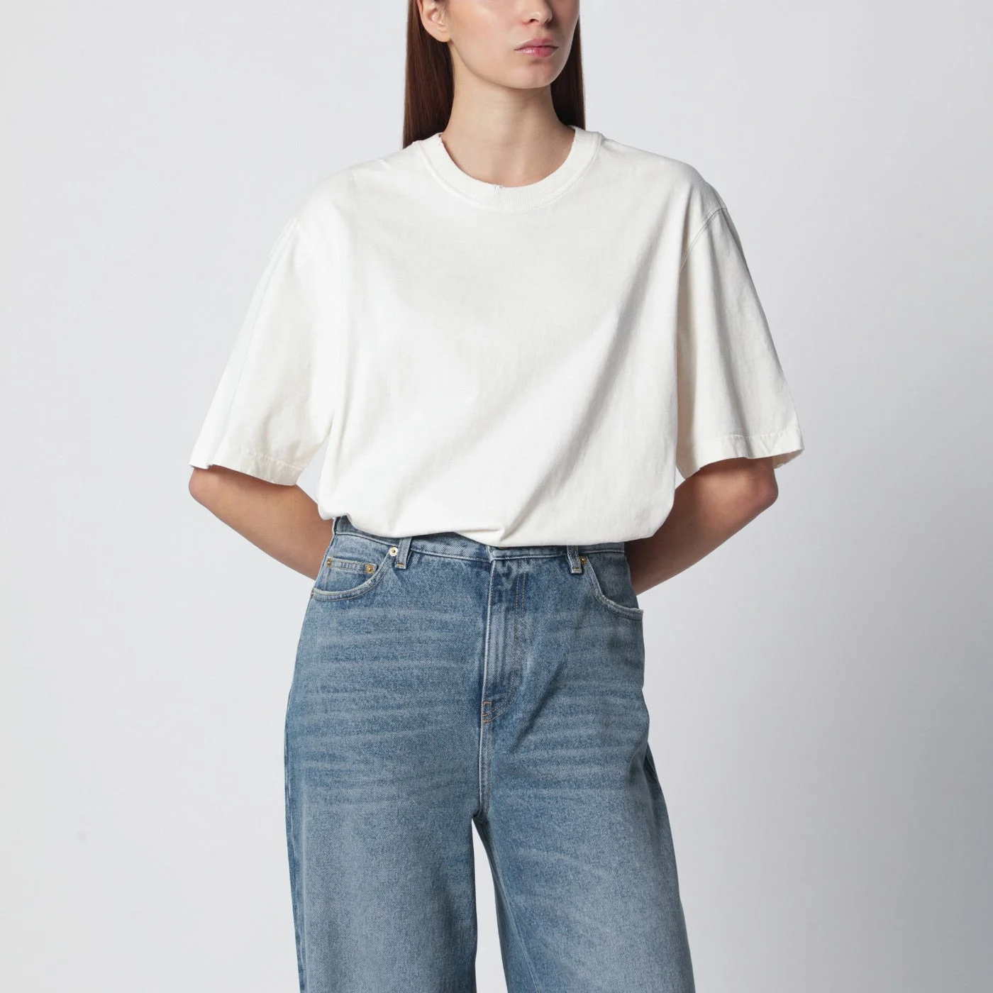 T-shirt by Golden Goose Deluxe Brand in white cotton with vintage effect• short sleeves• ribbed crew neck• double star logo on the back• reversed tone-on-tone logo lettering on the back• relaxed fit