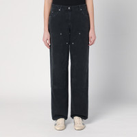 Wide pants by Golden Goose Deluxe Brand in black cotton denim, featuring a front zip and button closure, belt loops, five classic pockets, stud details, and a double star logo on the back.