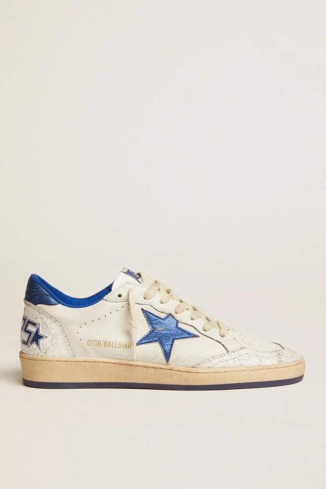 Women's Ball Star in white nappa with bright blue metallic leather star and heel tab