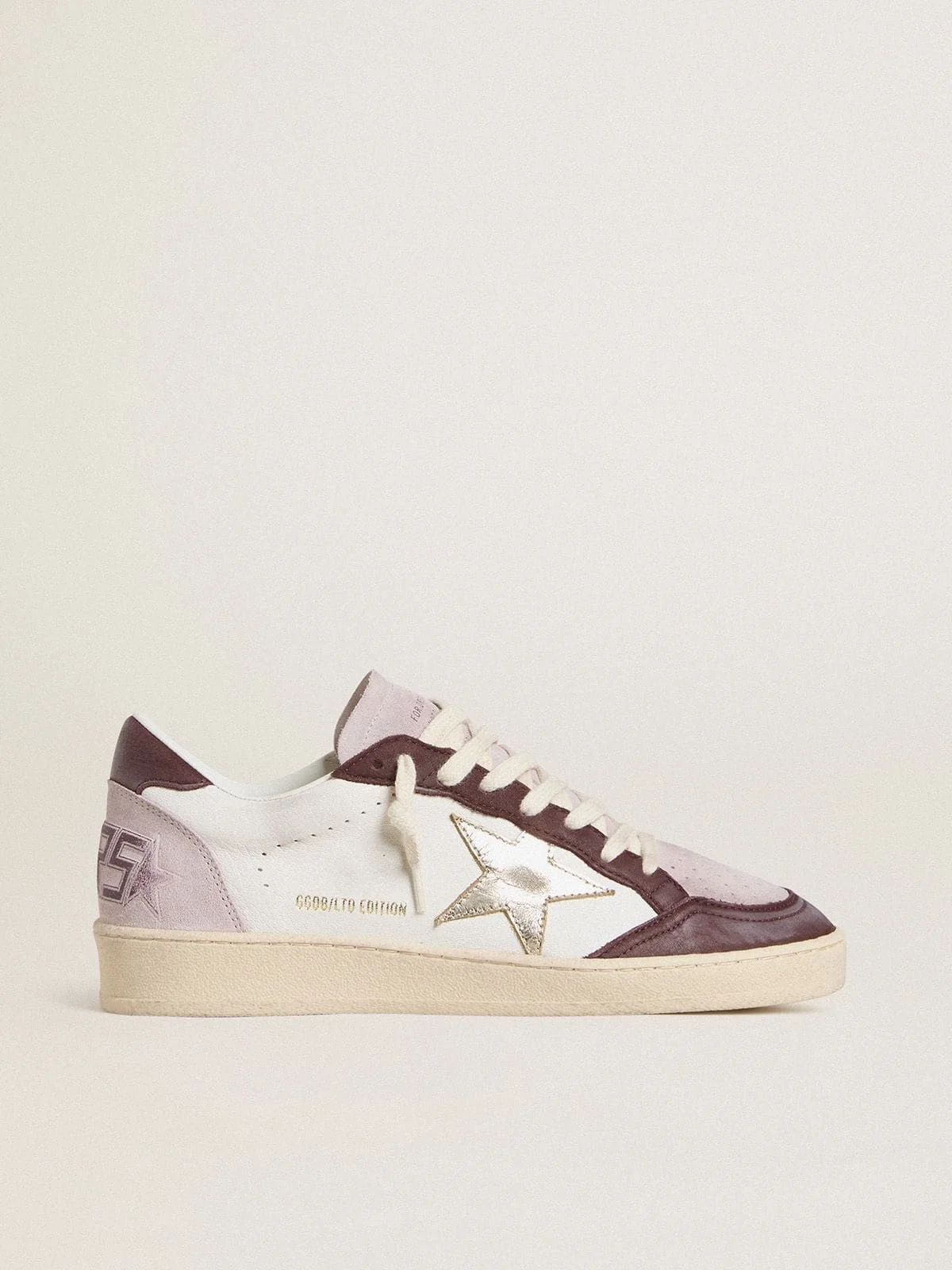 Dreaming of the Eighties. Our Ball Star sneakers have an American college vibe caught between a hoop shot and a skateboard ride. Like this model crafted in white nappa leather with pink suede inserts, featuring a platinum foiled leather star and burgundy nubuck leather heel tab. The worn-white laces and the Sneakers writing on the heel in a burgundy "heavy metal" font add the finishing touch: beautiful things that never go out of fashion. DETAILS Item No. GWF00117.F007300.12249 - White nappa leather upper with pink suede inserts - Platinum foiled leather star - Burgundy nubuck leather heel tab - Sneakers lettering on the heel in a burgundy heavy metal font - Worn-white laces - Vintage finish - Upper: 52% sheepskin leather, 48% cow leather - Lining: 34% cotton, 31% cow leather, 24% textile polyurethane, 7% viscose, 4% polyester - Sole: 100% rubber - Handmade - Made in Italy