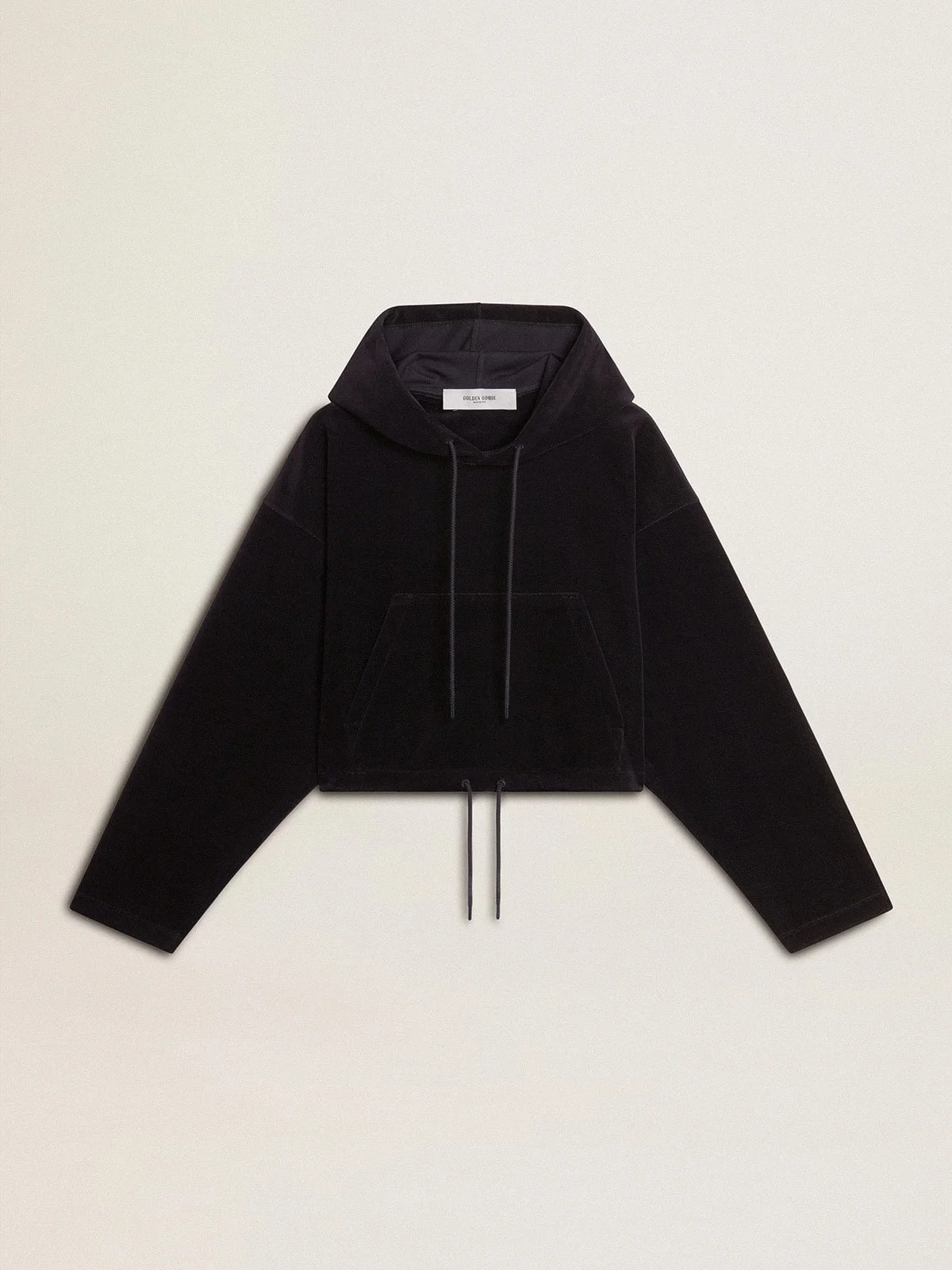Inspired by the electric energy of the Nineties, the collection celebrates the limitless power of shared dreams. Moved by passion, each design captures the meaning of togetherness and the power of music. With a black chenille effect, this cropped sweatshirt features embroidered 'Golden 78' lettering with studs on the back. DETAILS Item No. GWP02194.P001882.50345 - Journey Collection - Color: black - Cropped fit - Hood - 'Golden 78' embroidery with studs on the back - Main material: 81% cotton, 19% polyester - Made in Italy The model is 177 cm tall and is wearing a size S.