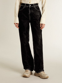 Women's black jeans with a velvet-like wash effect
