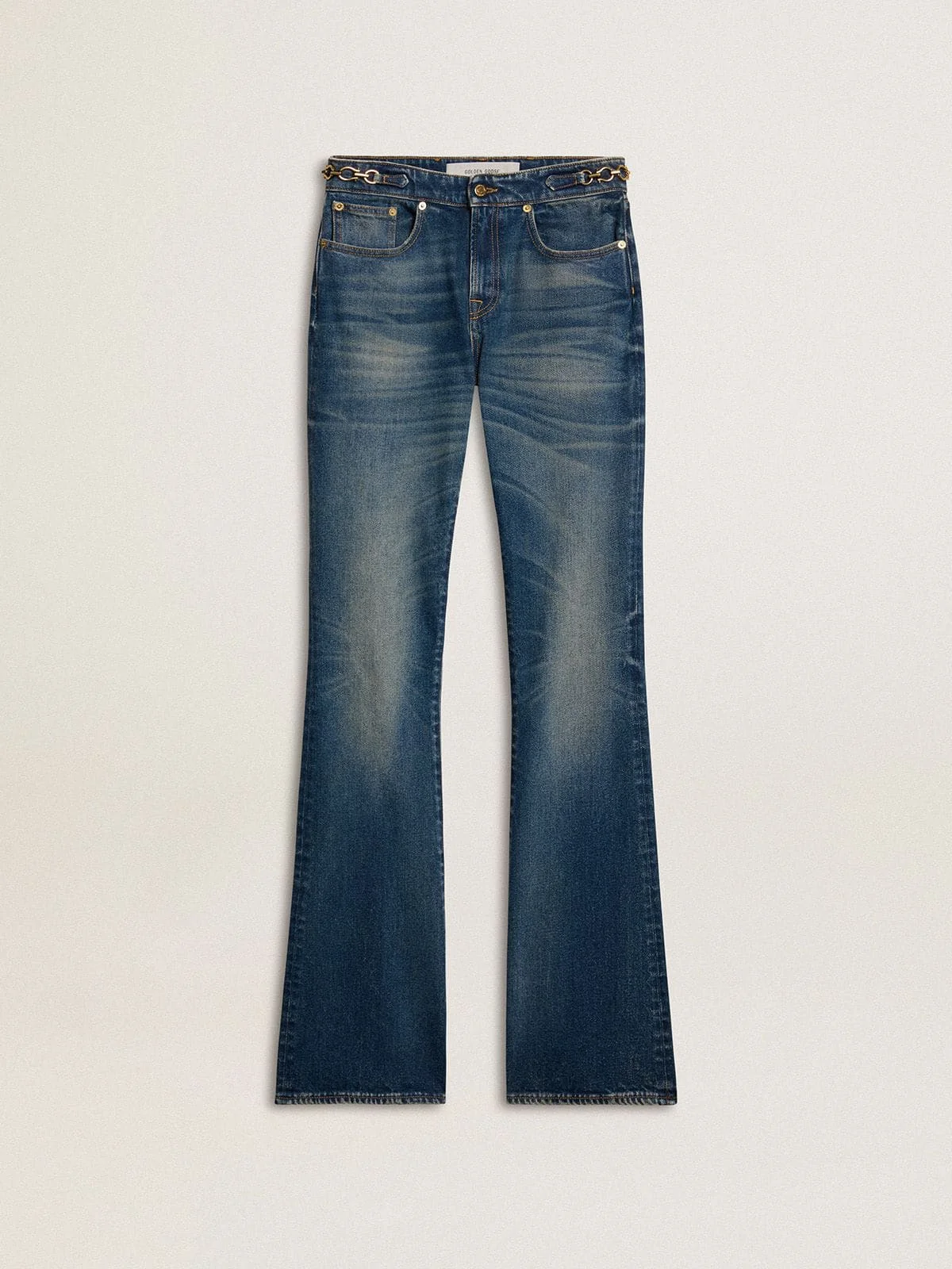 The second drop in the Fall/Winter 25 collection unfolds like a relaxed and refreshing journey, woven into the fabric of each and every piece. Made of denim cotton, these jeans feature a bootcut fit and the "Archive Wash", which gives the garment a lived-in look. The metallic detail at the waist and five pockets add the finishing touch. DETAILS Item No. GWP02460.P002078.50100 - Journey Collection - Color: blue - Bootcut fit - "Archive Wash" - Five pockets - Main material: 100% cotton - Pocket lining: 65% polyester, 35% cotton - Made in Italy The model is 177 cm tall and is wearing a size 27.