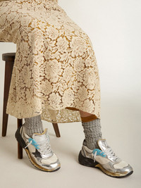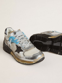 A soul with a wealth of stories to tell: our Dad-Star sneakers have timeless style, created to be passed down through the generations. This version features a white mesh and silver foiled leather upper accentuated by a black suede star and black suede heel tab. The light blue eyelets and ice-gray laces add the finishing touch. DETAILS Item No. GWF00884.F007463.70287 - White mesh and silver foiled leather upper - Black suede star - Black suede heel tab - Light blue eyelets - Ice-gray laces - Vintage finish - Upper: 62% cow leather, 25% polyester, 6% glass fiber, 4% polyamide, 3% textile polyurethane - Lining: 43% cotton, 28% textile polyurethane, 13% cow leather, 8% polyester, 8% viscose - Sole: 100% rubber - Handmade - Made in Italy