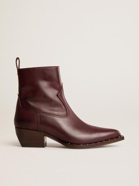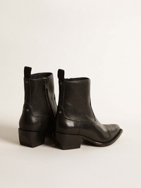 Rock soul and timeless style: the pointed toe, slim fit and minimal design of the Debbie ankle boot make it perfect for any occasion. In this low women's version, these boots feature a black leather upper with tone-on-tone stitching and a zip fastening on the side. The metal stud detail and gold-colored metal plaque engraved with the Golden Goose signature on the heel complete the look. DETAILS Item No. GWF00545.F004488.90100 - Color: black - Zip fastening on the side - Tone-on-tone stitching - Metal studs on the back - Gold-colored metal plaque engraved with the Golden Goose signature on the heel - Heel height: 4.5 cm - Leg height: 15 cm - Upper: 100% cow leather - Lining: 100% cow leather - Sole: 100% cow leather
