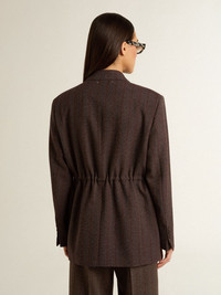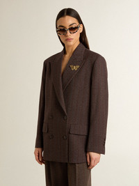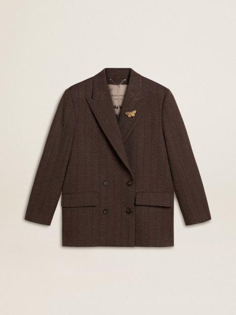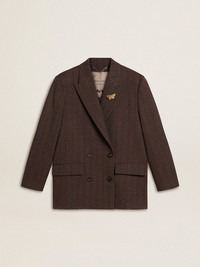 Women's double-breasted blazer in dark brown wool with thin stripe pattern