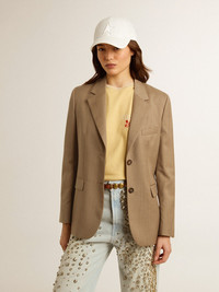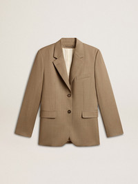 A love story to our home, Marghera. Where everything began. Our latest collection reflects the spirit of our birthplace, its contrasts, industrial soul, and manufacturing landscapes, weaving together inspirations from both the vibrant energy of workwear and the refined essence of traditional tailoring. This women's double-breasted wool blazer in dove gray features a fastening with logoed horn buttons. The choice of material is no accident, as this lightweight wool is ideal to be worn with the arrival of the summer. DETAILS Item No. GWP01326.P001609.60528 - Journey Collection - Color: dove gray - Double-breasted - Double star on the back - Three front pockets - Long sleeves - Regular fit - Fastening with horn buttons - Main material: 100% virgin wool - Lining: 49% cotton, 46% viscose, 5% polyester - Undercollar: 70% wool, 30% viscose - Made in Italy The model is 177 cm tall and is wearing a size 40.