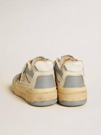 Inspired by the glory days of American basketball, the Forty2 sneaker channels the evergreen charm of the 1990s. Its chunky low-top silhouette and sporty design evoke a legendary journey, celebrating the indomitable spirit of the eternal dreamer. With a unique handcrafted construction and micro-perforated inserts, this women’s version in white leather features details with a 3D textured effect, such as the gray TPU star and gray leather insert on the back, and a white leather heel tab. The gray piping and vintage-effect white laces add the finishing touch. DETAILS Item No. GWF00630.F006886.10973 - White leather upper - Gray 3D textured-effect TPU star - White leather heel tab - White micro-perforated leather inserts - Gray 3D textured-effect leather insert on the back - Woven label with custom print - Striped-effect white nylon tongue and inserts - Lived-in finish - Leather insole and double-density foam - Double sole with bandage-effect foxing - Color block effect sculpted outsole - Gray textured piping - Vintage-effect white laces - Gray eyestay with logo in 3D textured-effect TPU - Upper: 84% cow leather, 15% polyester, 1% textile polyurethane - Lining: 38% polyester, 38% cotton, 20% cow leather, 2% textile polyurethane, 2% spandex - Sole: 100% rubber - Handmade - Made in Italy
