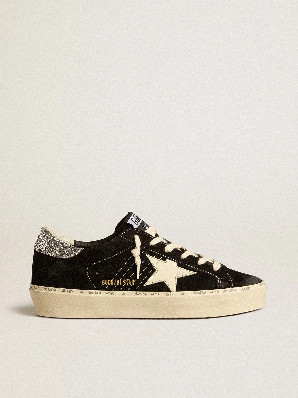 Double height and iconic design: inspired by our Super-Star sneakers, the Hi Star sneakers feature double foxing, embellished with hand lettering. This black leather model features white stitching on the upper and a silver glitter heel tab. The cream-colored star and laces add the finishing touch. DETAILS Item No. GWF00118.F005045.90201 - Color: black - Cream leather star - Silver glitter heel tab - Cream laces - Vintage finish - Upper: 29% textile polyurethane, 27% cotton, 16% polyethylene, 15% cow leather, 13% cellulose - Lining: 41% cotton, 41% polyurethane, 12% viscose, 6% polyester - Sole: 100% rubber