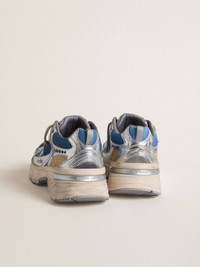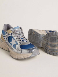 A flashy memory of Y2K. Lightstar is a symbol of nostalgia with a future-forward touch. With metallic flairs, shiny hints of light, and a chunky sole, this sneaker is always in the spotlight. This women's model with a faded light blue mesh upper features a white TPU star and ice-gray laces. This model is embellished with details that complete the look: silver-colored glossy bio-based inserts, logo label on the tongue and mesh textures. DETAILS Item No. GWF00724.F007845.70269 - Faded light blue mesh upper with silver-colored glossy bio-based inserts - White TPU star - Faded light blue mesh heel tab with silver-colored glossy bio-based inserts - Lived-in finish - "Lightstar" insole - Label on the tongue - Logo on the heel - Ice-gray tube laces - Upper: 50% textile polyurethane, 47% polyester, 3% cow leather - Lining: 64% polyester, 30% cow leather, 4% spandex, 2% textile polyurethane - Sole: 100% rubber - Handmade - Made in Italy