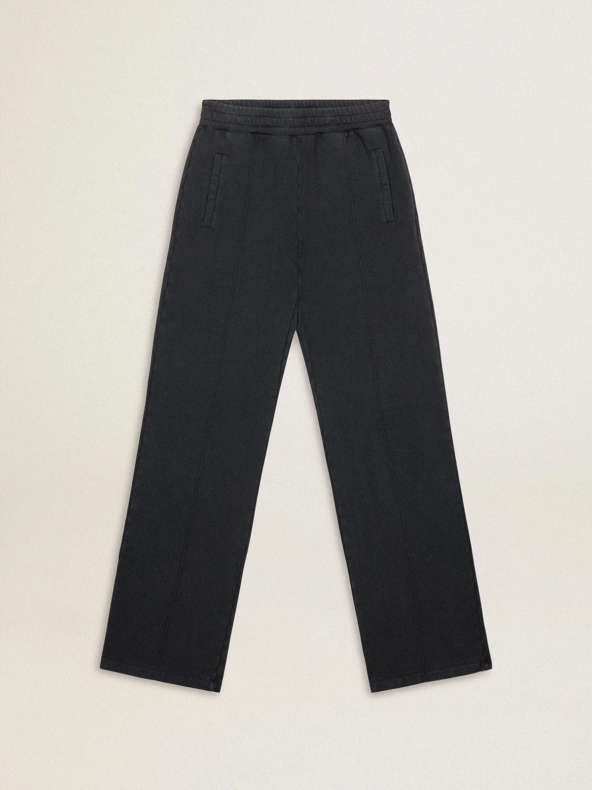 A collection with a casual soul but a versatile attitude: inspired by the Seventies, it has a timeless vintage appeal, suited to any occasion or look. Inspired by the world of tailoring, echoed by the stitched pleat on the front, these joggers in navy blue pure cotton feature a wide leg. The double silver star on the back adds the finishing touch. DETAILS Item No. GWP02073.P001774.90456 - Color: navy blue - Double silver star on the back - Wide leg - Three pockets - Main material: 100% cotton - Rib material: 100% cotton - Pocket lining: 100% cotton - Made in Italy The model is 177 cm tall and is wearing a size S.