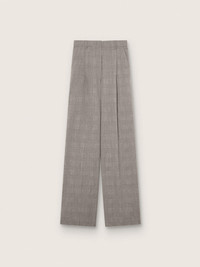 Our Holiday Collection is a celebration of woven textures and sharp tailoring, blending with soft knits, velvet whispers, archive florals, and satin that catches the light just right. A timeless classic in the female wardrobe: these oversized-fit pants in gray Prince of Wales check fabric feature two pockets on the front and an internal front fastening with a hidden button, metal hook and zip. The welt pocket on the back and the iconic silver stars complete the look. DETAILS Item No. GWP02182.P002318.60567 - Journey Collection - Color: gray - Women's model in Prince of Wales check - Oversized fit - Front pockets in viscose twill - Welt pocket on the back - Interior front closure with concealed button, metal hook and nylon zip - Double star on the back - Belt loops - Main material: 100% virgin wool - Lining: 100% viscose - Made in Italy The model is 177 cm tall and is wearing a size S.
