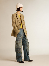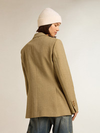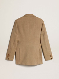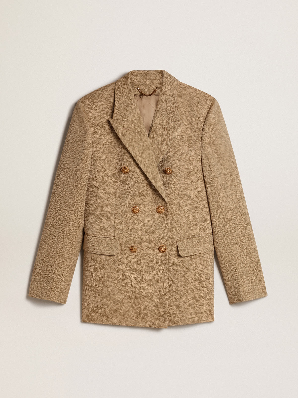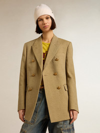An ode to Venice, our home, seen with the eyes of those dreamers who live it every day. This Journey Collection explores the city of our roots, drawing inspiration from the people who inhabit it. Different, iconic places now discovered through the life of its lovers. This women’s pale beech-colored regular-fit double-breasted jacket features an all-over jacquard motif and gold-colored heraldic button fastening. The seasonal motif printed on the lining adds the finishing touch. DETAILS Item No. GWP00829.P001169.35849 - Journey Collection - Color: pale beech - Double-breasted model - Double gold star on the back - Three front pockets - One inside pocket - All-over jacquard motif - Gold-colored heraldic buttons - Printed lining - Regular fit - Main material: 100% wool - Lining material: 64% viscose, 36% cupro - Pocket lining: 55% polyester, 45% viscose - Made in Italy The model is 177 cm tall and is wearing a size 40.