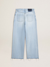 Inspired by the electric energy of the Nineties, the collection celebrates the limitless power of shared dreams. Moved by passion, each design captures the meaning of togetherness and the power of music. These denim pants with bleached dye have an oversized fit and rips that give a lived-in effect. The five pockets add the finishing touch. DETAILS Item No. GWP02079.P001850.50134 - Journey Collection - Color: blue - Boyfriend fit - Lived-in effect - Rips on the front - Five pockets - Double star on the back - Main material: 100% cotton - Made in Italy The model is 177 cm tall and is wearing a size 27.