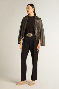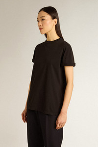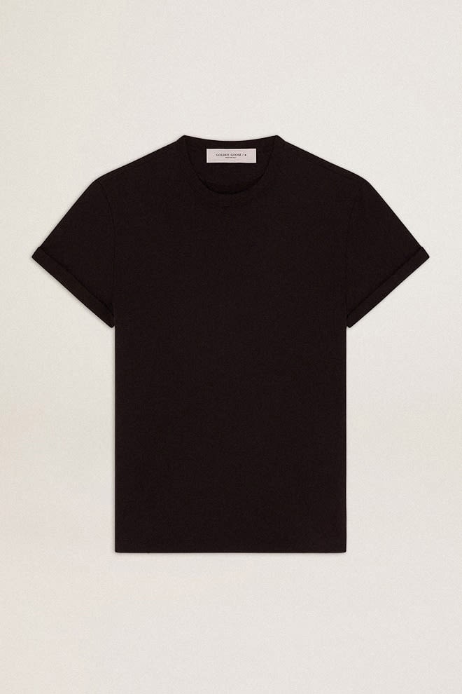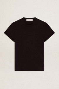 A unique, timeless collection that encapsulates the Golden Goose DNA, designed to remain with you every day, through thick and thin, come rain or shine. In vintage black cotton, this regular-fit T-shirt features a distressed treatment, rolled-up sleeves and a detachable white patch with a finely embroidered letter G in red. DETAILS Item No. GWP01220.P000637.90292 - Golden Collection - Color: vintage black - Double gold star on the back - Detachable white patch with embroidered red letter G - Regular fit - Short sleeves - Distressed treatment - Main material: 100% cotton - Made in Italy The model is 177 cm tall and is wearing a size S.