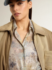 Inspired by the iconic Seventies, the carefree spirit of that era comes to life with the first drop of our Fall/Winter 25 collection. This shirt dress features a multicolor floral sequin print in shades of lilac, yellow and pastel blue. The tone-on-tone belt and button fastening add the finishing touch. DETAILS Item No. GWP02471.P002151.82973 - Journey Collection - Color: multicolor - Double star on the back - Tone on tone belt at the waist - Multicolor sequined floral motif - Two pockets - Button fastening - Main material: 100% polyester - Made in Italy The model is 177 cm tall and is wearing a size 40.