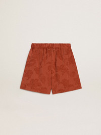 The Resort 2025 Collection invites you to slow down and embrace the effortless beauty of Mediterranean living. A celebration of lived-in textures, laid-back rhythms, and the understated elegance woven into life’s simplest moments. These women's shorts in brick-red viscose blend feature a floral jacquard motif with maritime references, an elasticated waistband and side pockets. The relaxed design reflects the slow philosophy with the distinctive touch of the two gold stars on the back. DETAILS Item No. GWP02294.P002041.40177 - Resort Collection - Color: Autumn Glaze brick red - Relaxed fit - Floral jacquard pattern with marine references - Elasticated waist - Side pockets - Two gold stars on the back - Lived-in effect - Main material: 65% viscose, 35% cotton - Made in Italy The model is 177 cm tall and is wearing a size S.
