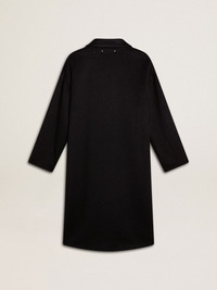 Inspired by the electric energy of the Nineties, the collection celebrates the limitless power of shared dreams. Moved by passion, each design captures the meaning of togetherness and the power of music. In black wool, this single-breasted cocoon coat features a closure with two black buttons, two front pockets and two stars on the back. DETAILS Item No. GWP02275.P001973.90100 - Journey Collection - Color: black - Single-breasted cocoon style - Double star on the back - Two front pockets - Closure with two black buttons - Main material: 50% virgin wool, 35% mohair, 15% polyamide - Lining material: 100% viscose - Made in Italy The model is 177 cm tall and is wearing a size 40.